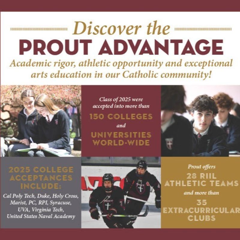The Prout School is a Catholic, diocesan, coeducational college-preparatory school educating students in southern Rhode Island for more than 50 years. We have been an IB World School for more than 30 years. The Prout School does not discriminate on the basis of age, race, religious beliefs or ethnic origin.